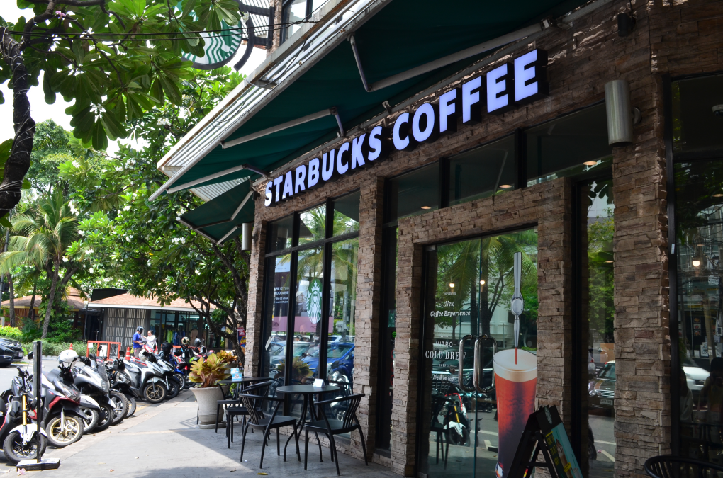 탑마켓이 보이고 탑마켓 들어가는 입구에 스타벅스 커피숍도 보여요.